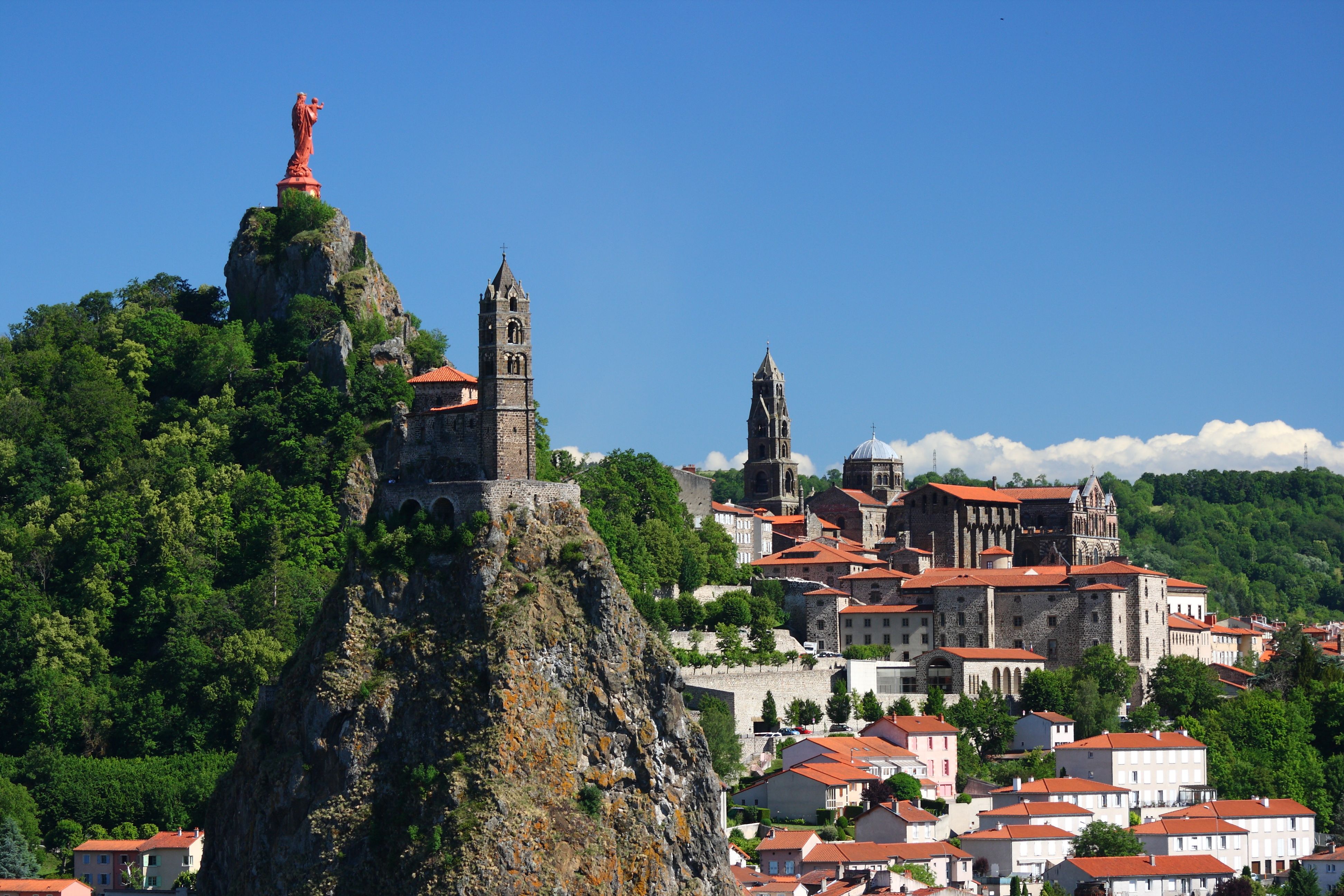 Depuis votre hébergement, nous conseillons de rejoindre la Cathédrale du Puy en Velay, vous aurez ainsi le loisir de découvrir cet édifice roman incontournable et de traverser une partie de la vieille ville. En sortant du Puy, magnifique panorama avec vue sur l’ensemble du bassin, puis traversée du Velay : pays de la lentille verte et de la brebis noire.