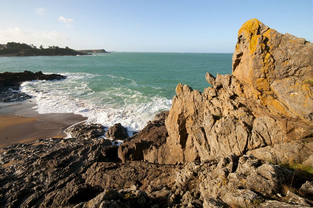 Transfert le matin. Après la superbe plage de sable blond de l'anse Duguesclin, vous accédez au havre de paix choisi par Colette, là où elle écrivit son roman culte "Le blé en herbe". Grâce au sentier sauvage de la Pointe du Meinga, vous aurez une vue permanente sur les flots impétueux se fracassant contre les rochers. Par un tombolo longeant les dunes, vous découvrirez ensuite l'île Besnard. Superbe vue sur les plages des Chevrets et le havre de Rothéneuf, qui se découvre totalement à marée basse.