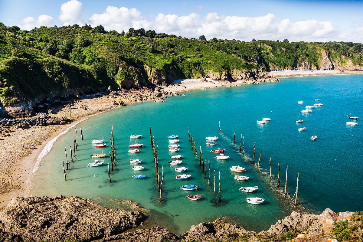 Traversée entre Bréhat et la Pointe de l’Arcouest, puis transfert vers le site du Gouffre et sa fameuse maisonnette protégée par deux imposantes parois rocheuses. Au loin, l’archipel des Sept-Îles se dévoile. Le sentier longe des presqu’îles où mer et terre se confondent, avant d’apercevoir les premières maisons de Port-Blanc et la surprenante chapelle Notre-Dame, partiellement enfouie sous la dune. Transfert en fin de randonnée et installation à Perros-Guirec, station balnéaire emblématique de la Bretagne nord, pour la nuit.